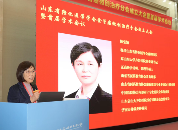 山东省转化医学学会副理事长陈莹颖在致辞中热烈祝贺分会成立,并强调该分会的设立是顺应医学发展趋势、响应精准医疗需求的重要举措。她希望分会充分发挥纽带作用,在规范诊疗、人才培养、多中心研究及技术标准化等方面积极推动,引领区域学科共同进步。